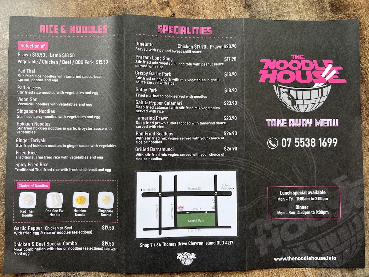Welcome to The Noodle House, a hidden gem located at 64 Thomas Dr, Surfers Paradise. Renowned for its sensational dishes, this cozy eatery specializes in authentic Asian flavors. Customers rave about the delectable Laksa, mouthwatering Golden Parcels, and generous stir-fried dishes loaded with fresh ingredients—crafted sans MSG. Diners appreciate the fast service and great value for money, making it perfect for a casual dinner or takeaway. Though the ambiance may be modest, the warmth of the staff and the richness of the food will ensure you leave with a satisfied palate. Discover deliciousness that keeps locals coming back!